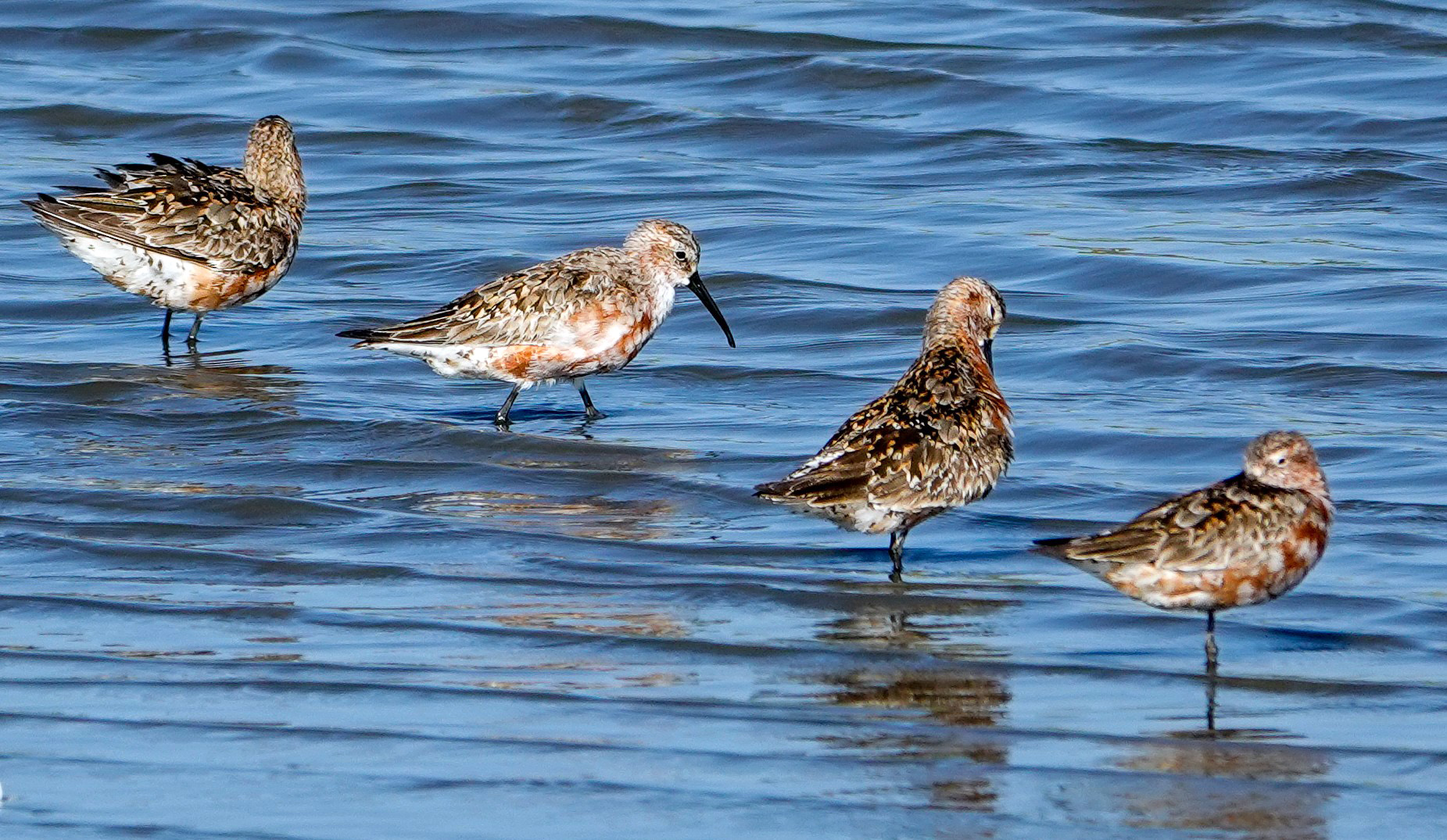 Bécasseau rousset : un individu de 1re année à Hyères (Var) le 18, un à Bouée (Loire-Atlantique) le 19, un à Aigues-Mortes (Gard) du 20 au 22, un à Plovan (Finistère) le 23 et un à Saint-Fraimbault-de-Prières (Mayenne) du 22 au 30.